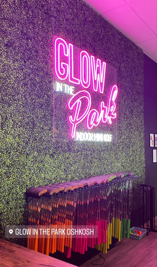 Our final stop was Glow in the Park! It’s an indoor mini golf course that literally glows in the dark. On the walls, you’ll see energetic designs and a few references to Alice in Wonderland. The 18 holes were each unique and offered some playful competition.