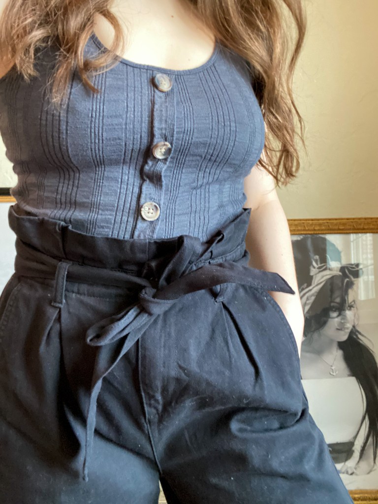 Lastly, I found one of my new favorite outfits: a simple grey tank and black wide-legged paper bag waist pants. I’d be lying if I said that I didn’t squeal with excitement when I tried these pants on. The fit, the style, and the look was spot on for me. I will definitely be wearing them out soon.